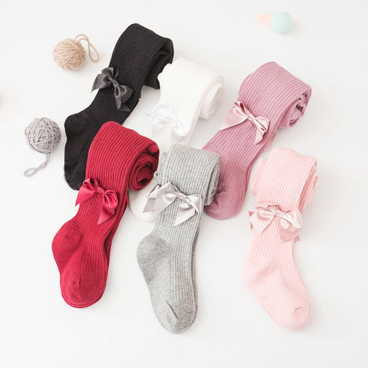 Spring And Autumn New Children's Pantyhose Bow Cotton White Baby Socks Medium Thick Foreign Girl Leggings