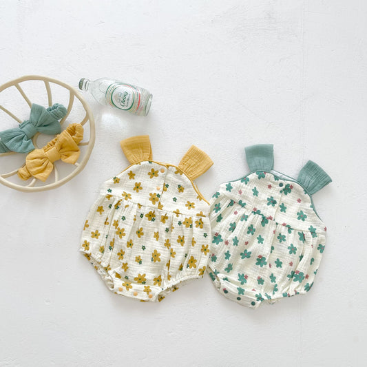 Summer Baby Girl Baby Sleeveless Small Flower Romper Cotton Baby Bag Fart Clothes Refreshing Breathable Romper