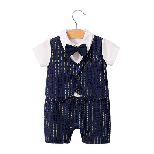 • Baby Bodysuit Short Sleeve Baby Full Moon Clothing Newborn Thin Gentleman Romper Creeper