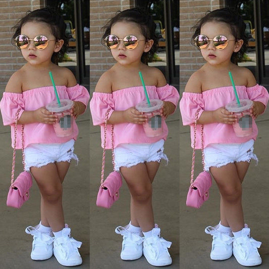 Baby Girls Blouses Fashion Toddler Infant Baby Kids Girls Off-shoulder Shirt Tops