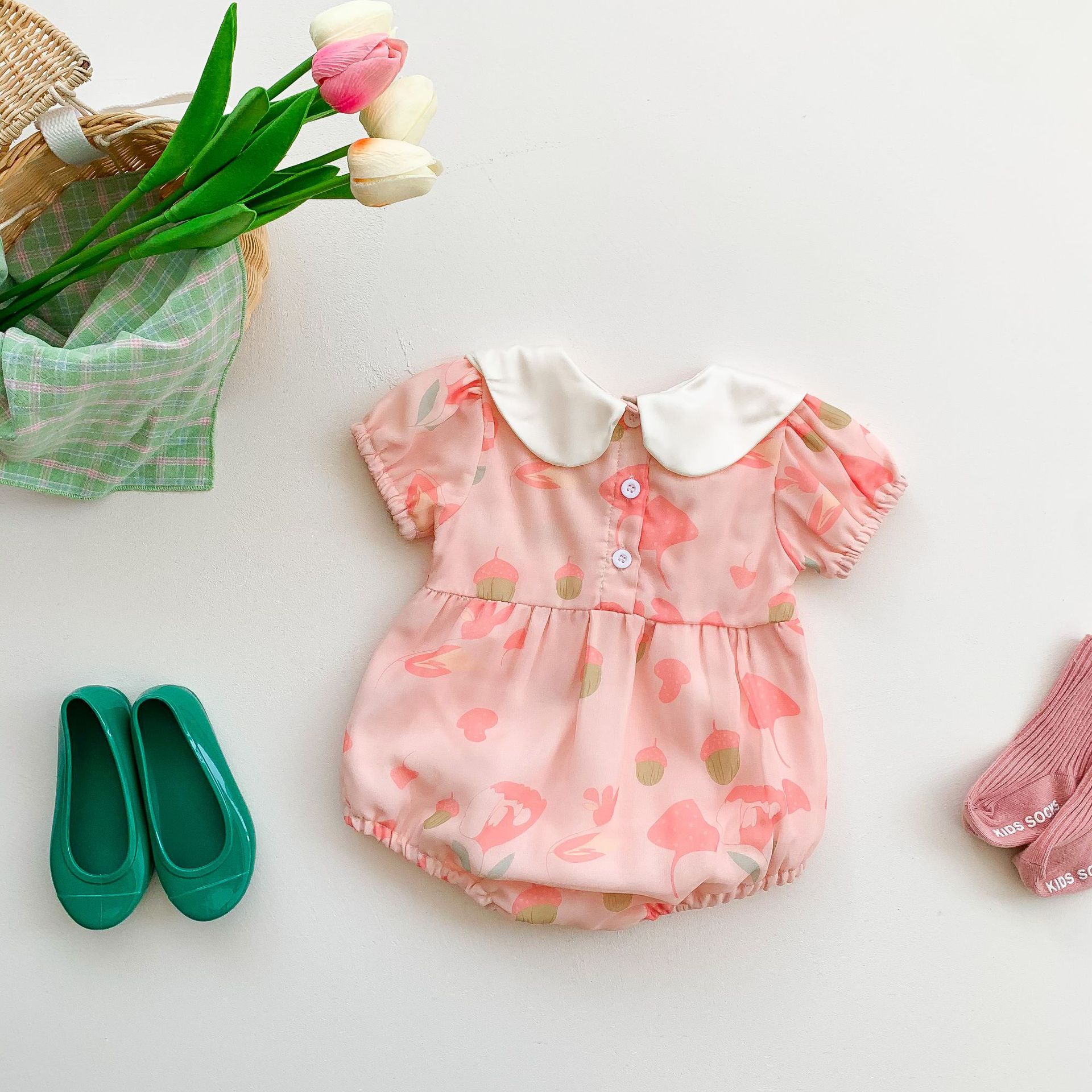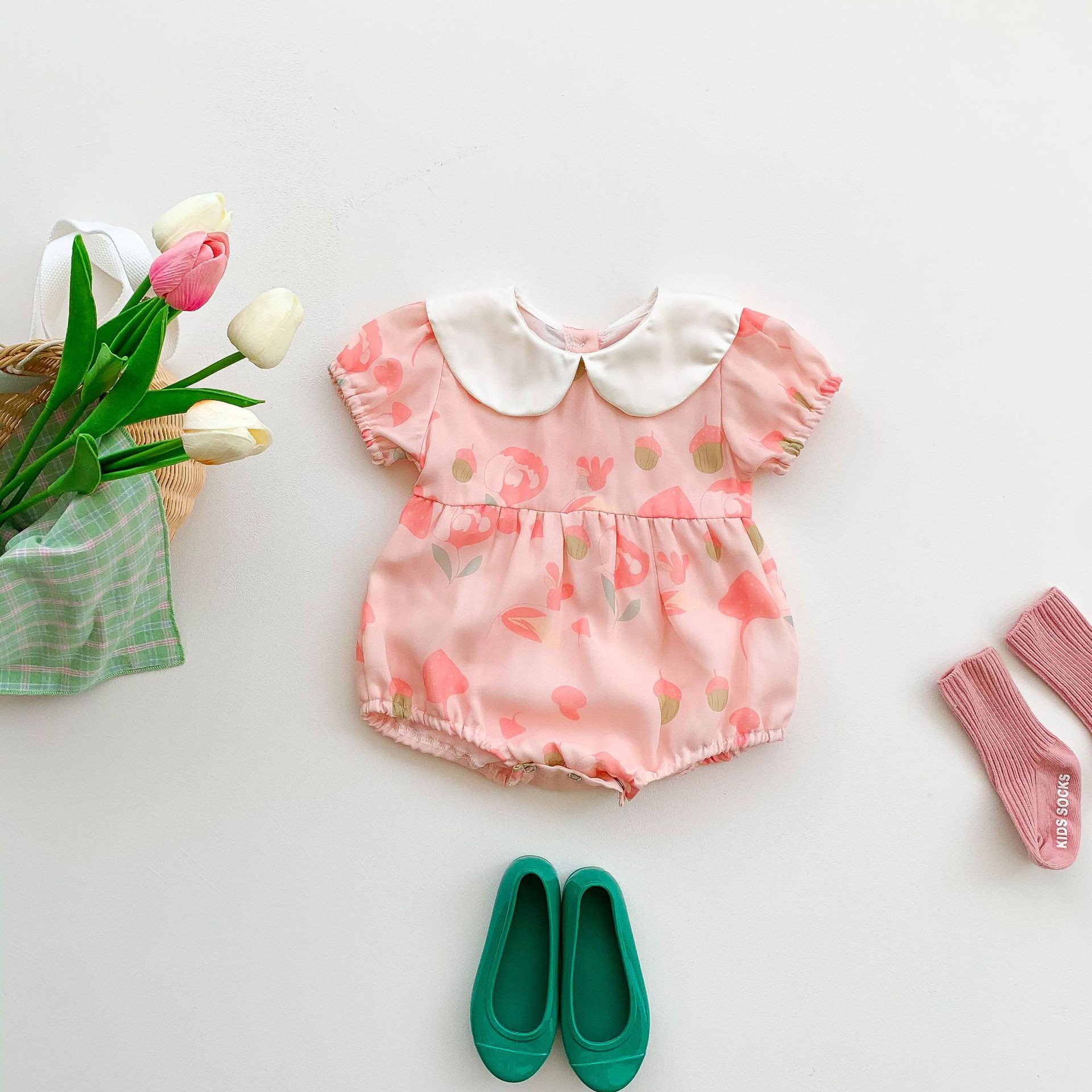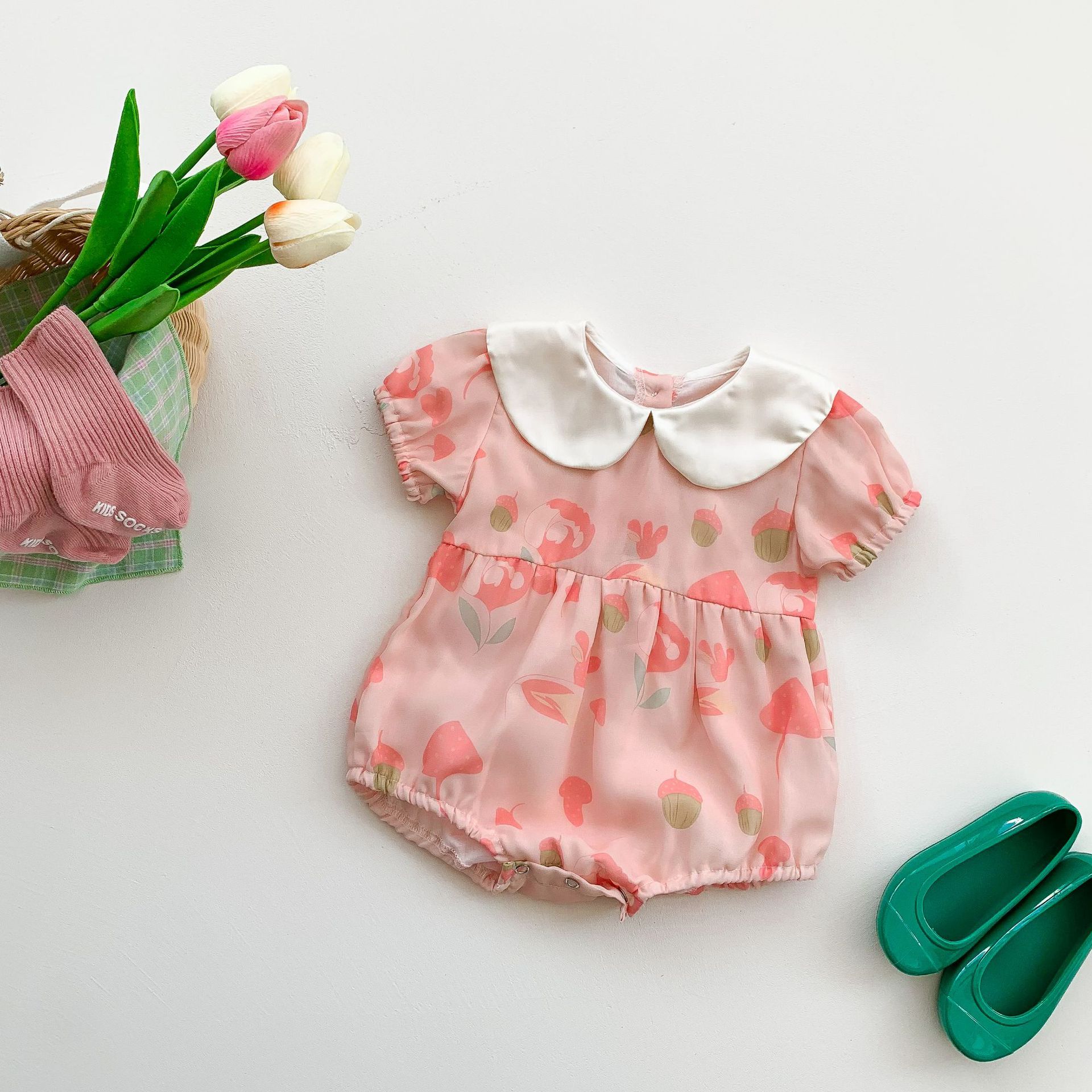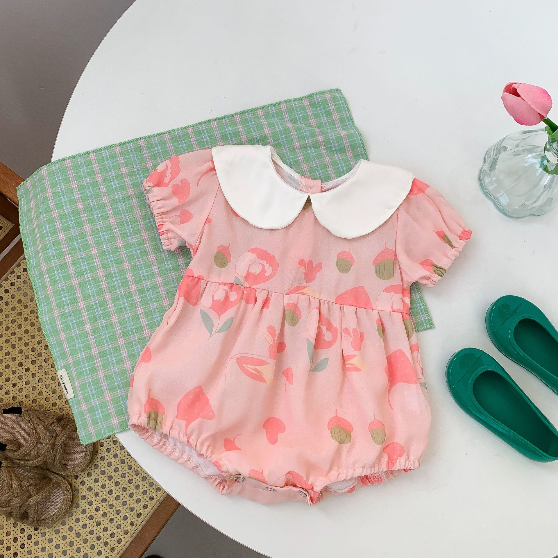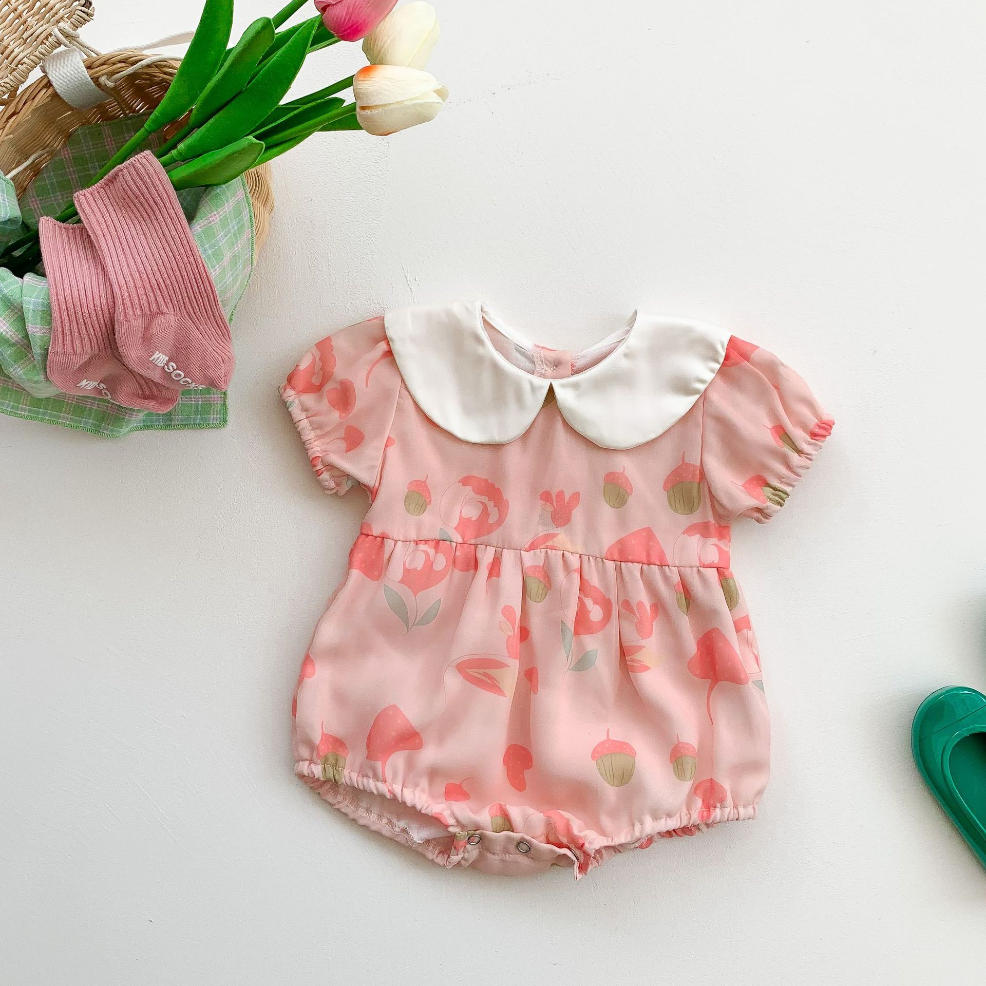 Summer New Newborn Korean Baby Girl Baby Lapel Jumpsuit Baby Romper Romper