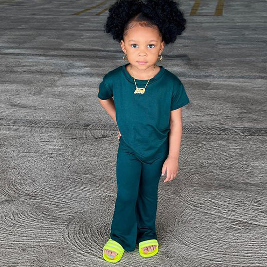 New Fashion Casual Solid Color Boys And Girls Suits Ins Wind T-Shirt Short-Sleeved Suits