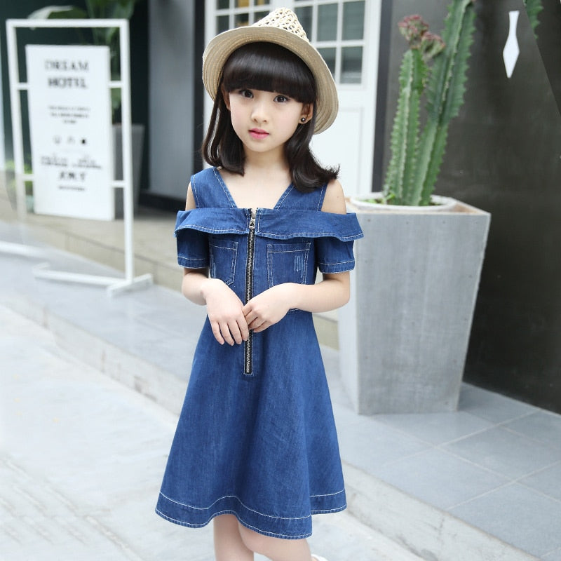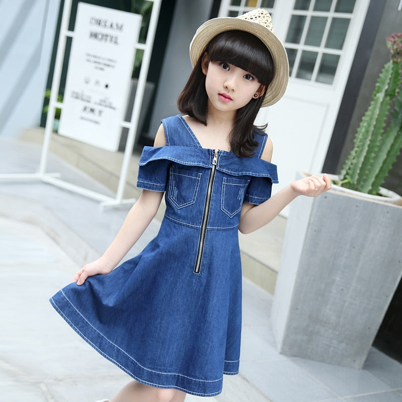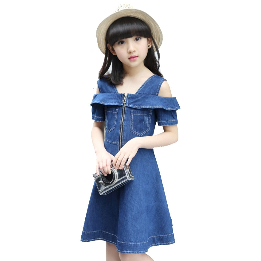 Girls Denim Dresses for Children Jean Clothes 2018 New Fashion Casual Dress Blue Short Sleeve Jeans Vestidos 4 6 8 10 12 Years