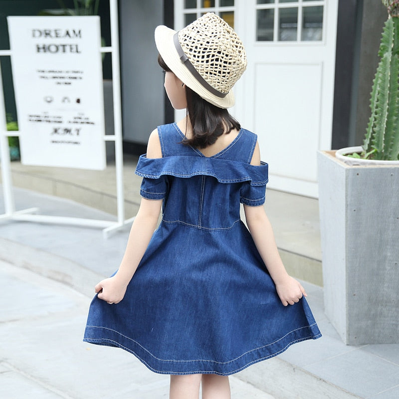 Girls Denim Dresses for Children Jean Clothes Casual Dress Blue Short Sleeve Jeans