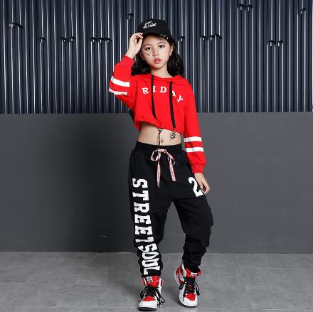 Kids Hip Hop Dance Costumes Girls Long Sleeve Sports Suit Children Jazz Hip hop Dance Clothes Wear for Girl 6 8 10 12 Years