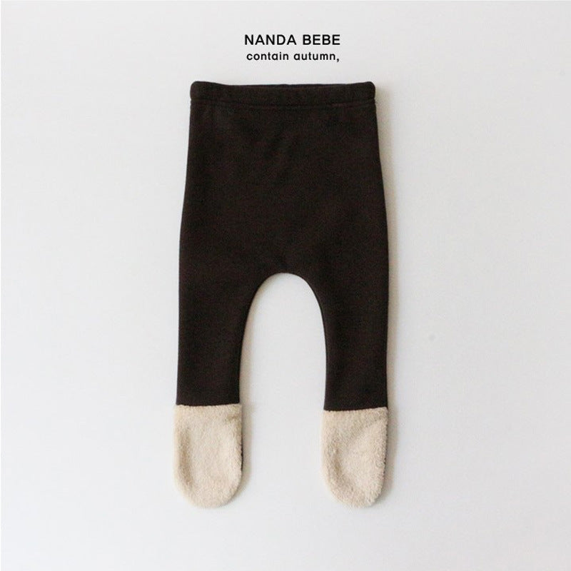 New stitching baby simple wild plus velvet pantyhose baby plush foot leggings winter tights