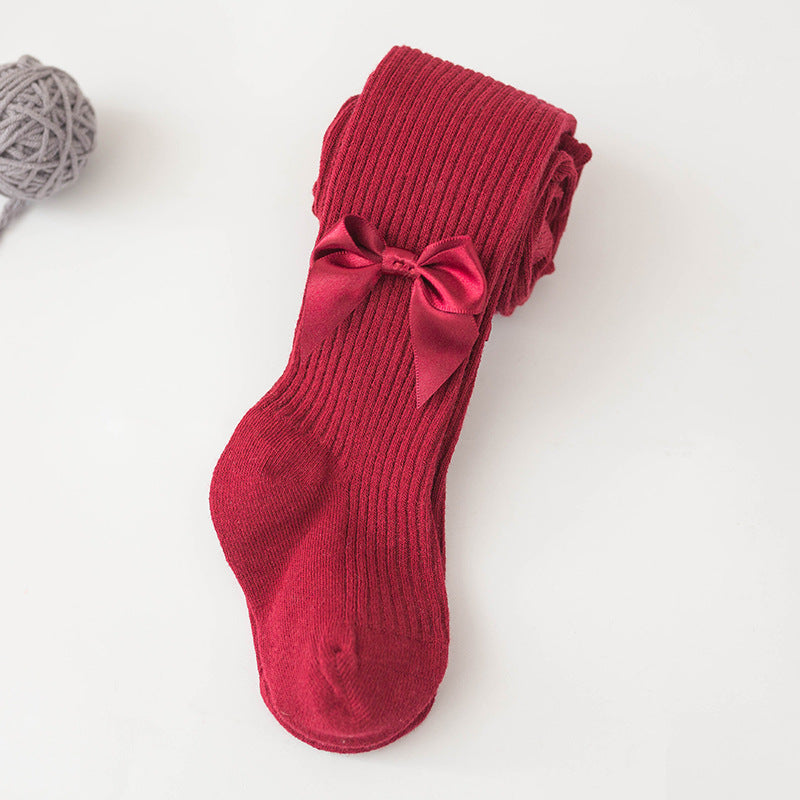 Spring And Autumn New Children's Pantyhose Bow Cotton White Baby Socks Medium Thick Foreign Girl Leggings