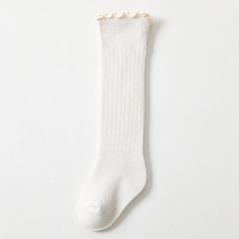 Spring And Summer Children's Socks In The Tube Loose Mouth Fungus Edge Combed Cotton Girls Baby Socks Long Tube Over The Knee Baby Socks