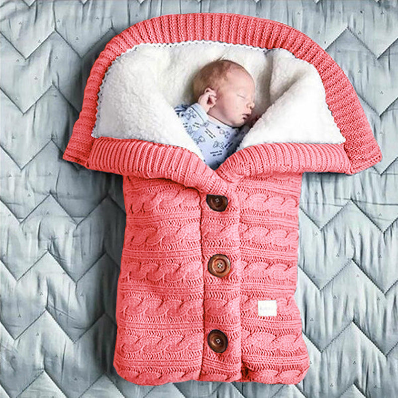Spring Autumn Winter Knitted Sleeping Bag Stroller Sleeping Bag Swaddle Stroller Sleeping Bag Button Twist Sleeping Bag Plus Velvet Thickened Quilt