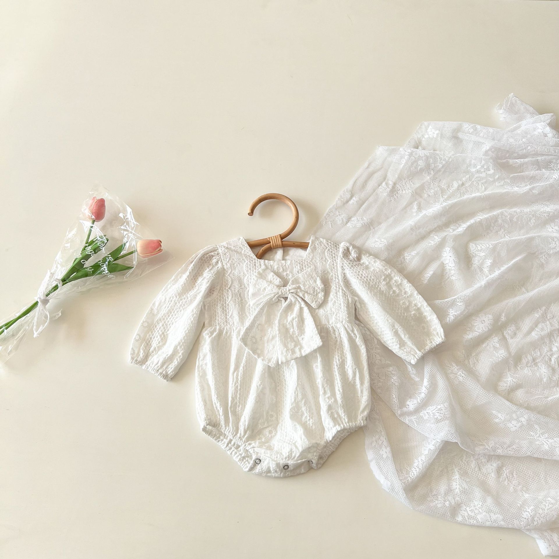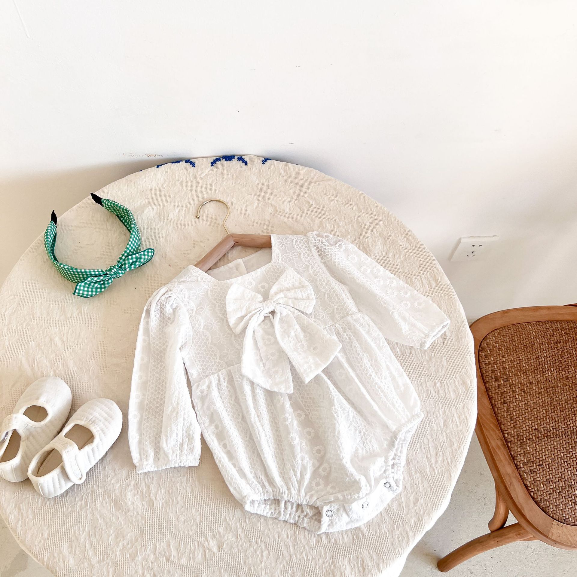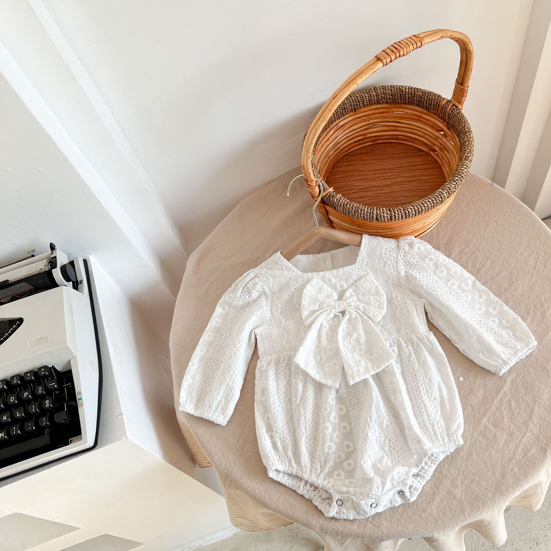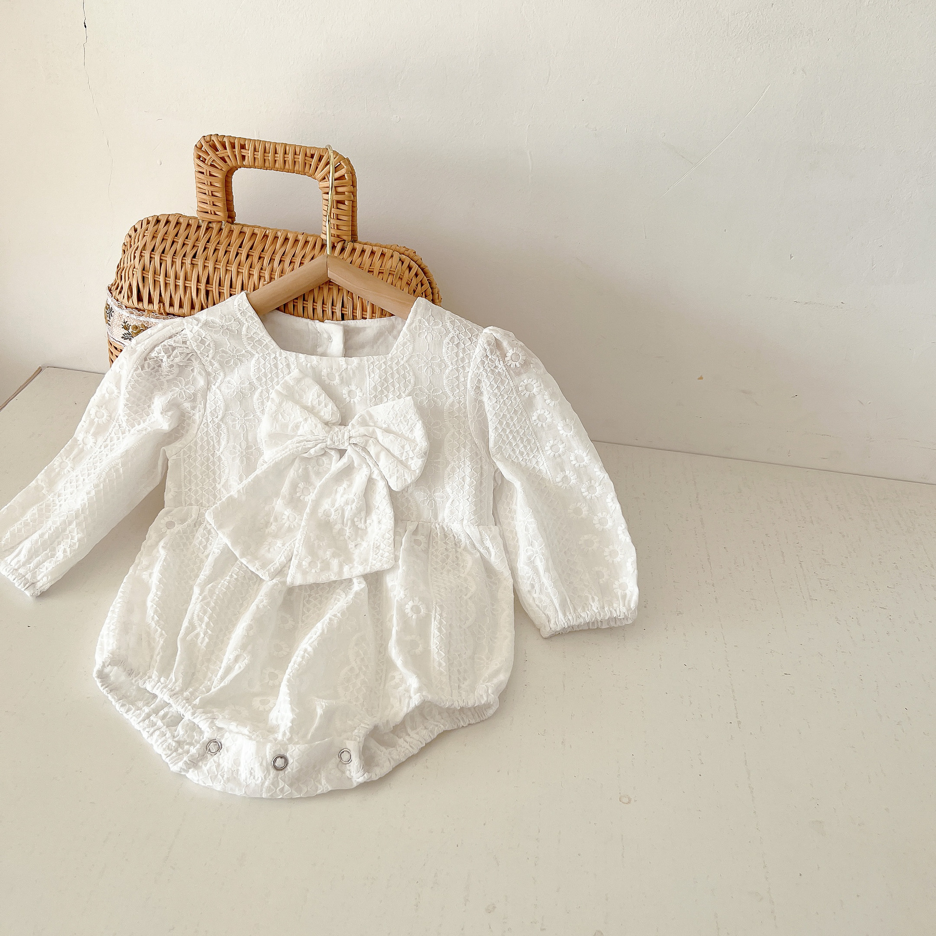 Spring long sleeved baby jumpsuit solid color embroidered big bow baby romper