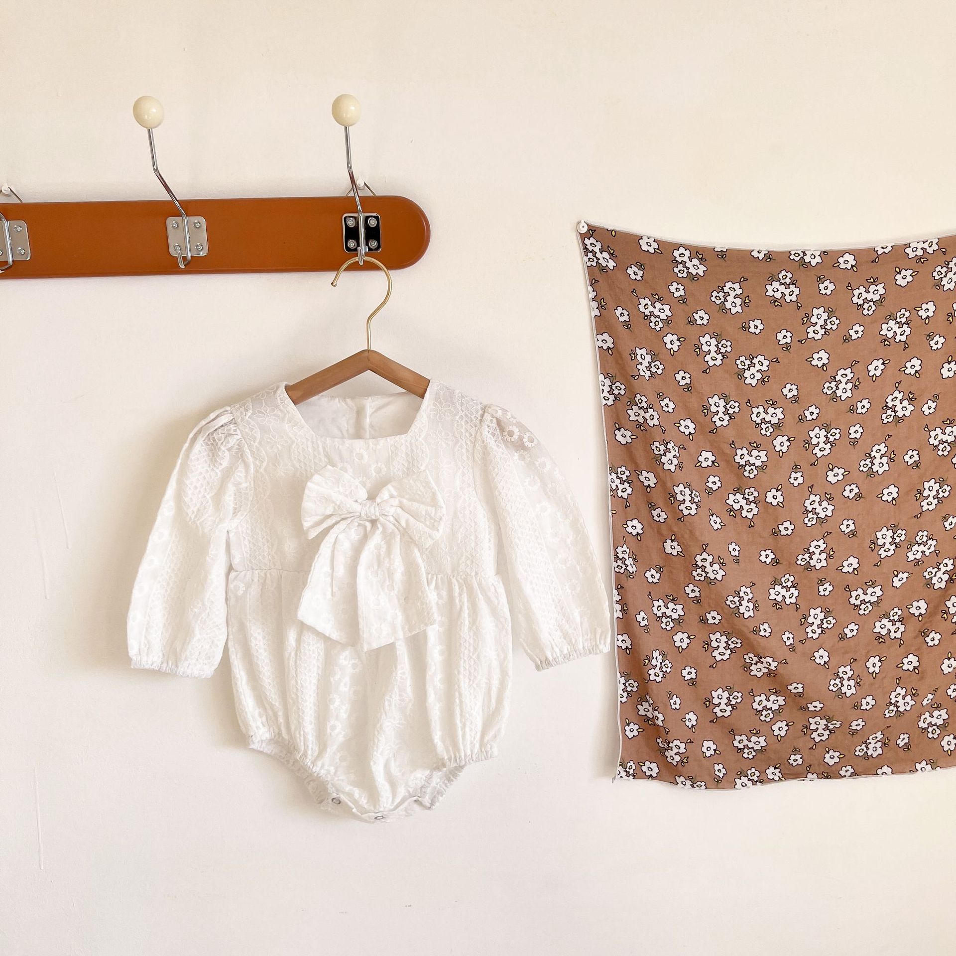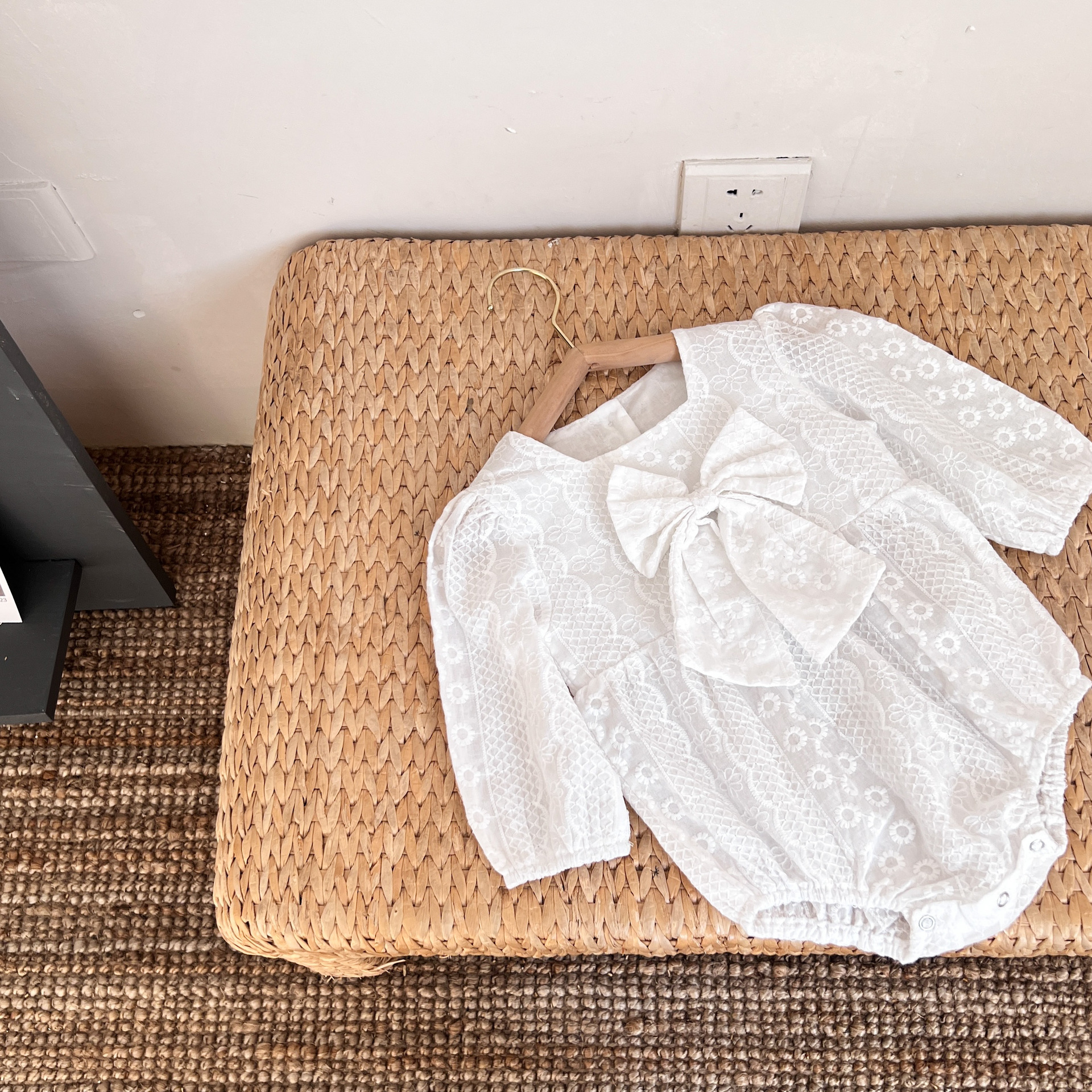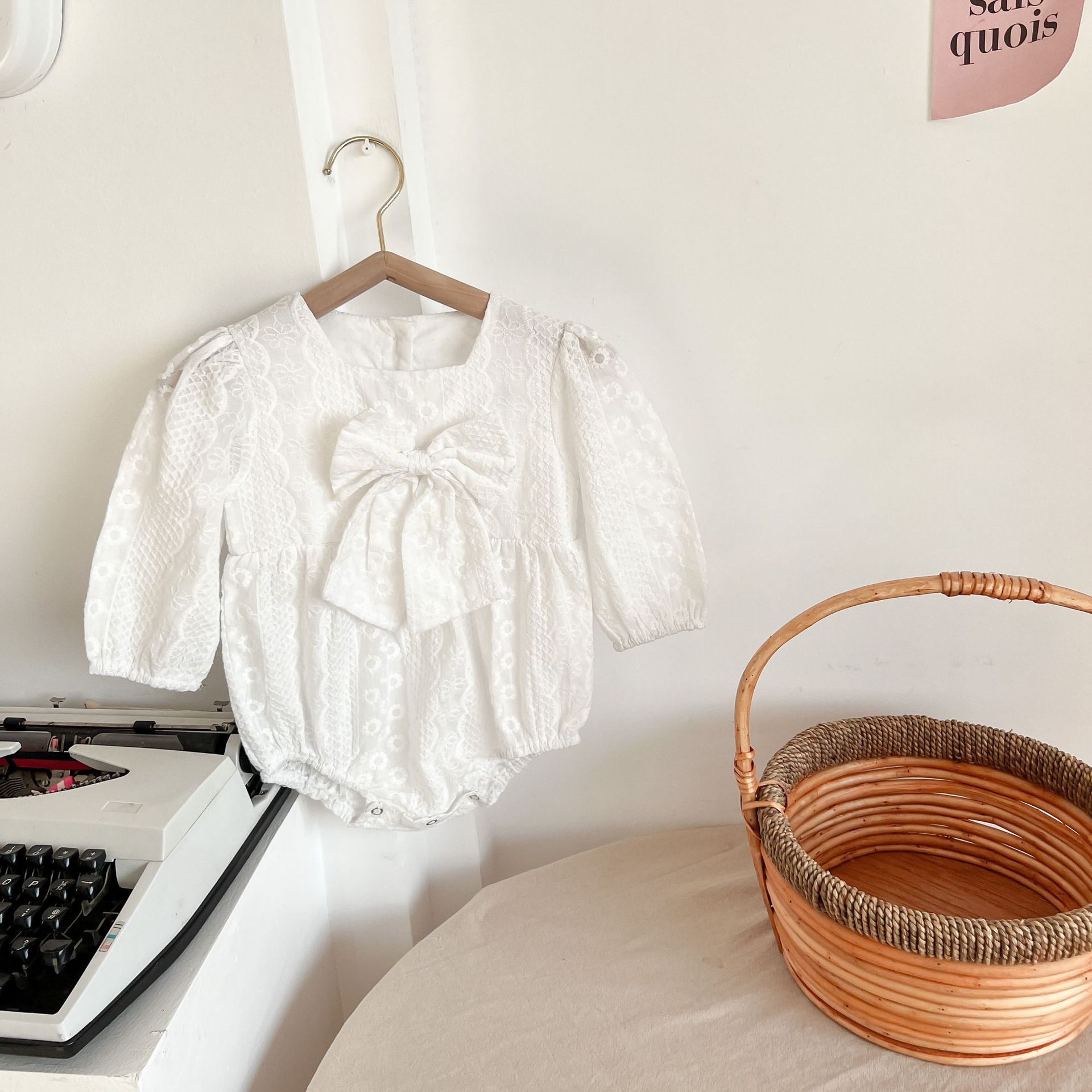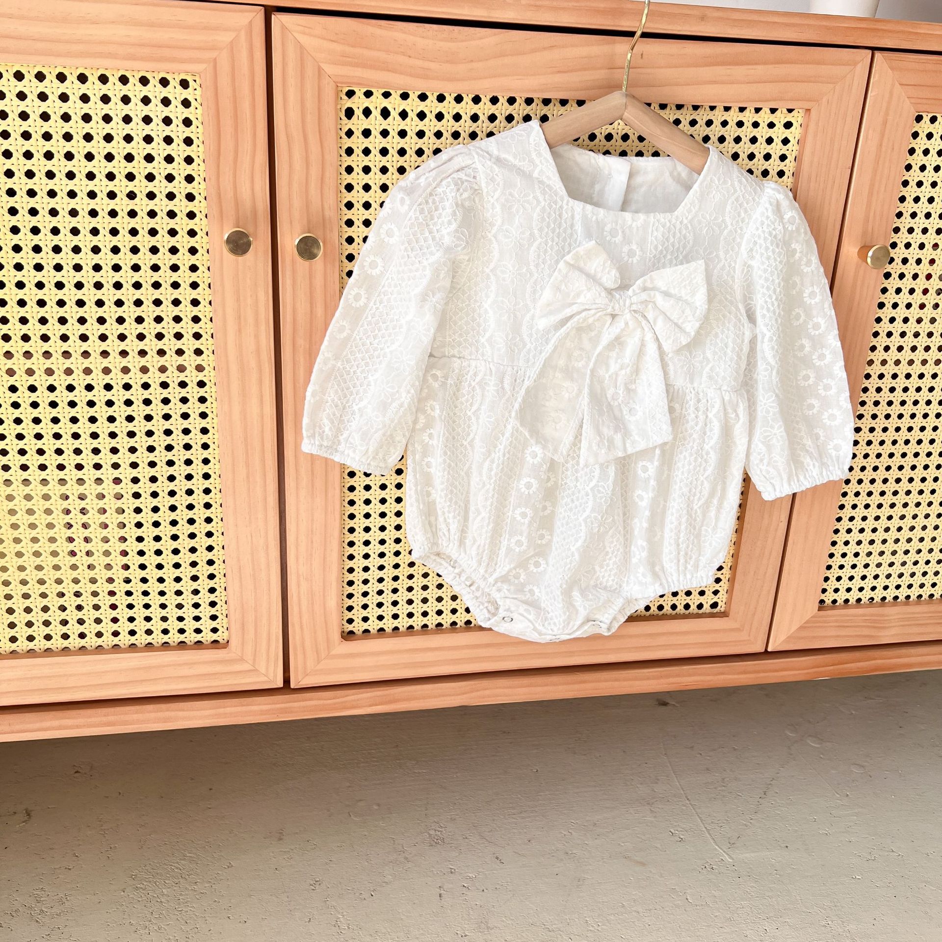 Spring long sleeved baby jumpsuit solid color embroidered big bow baby romper