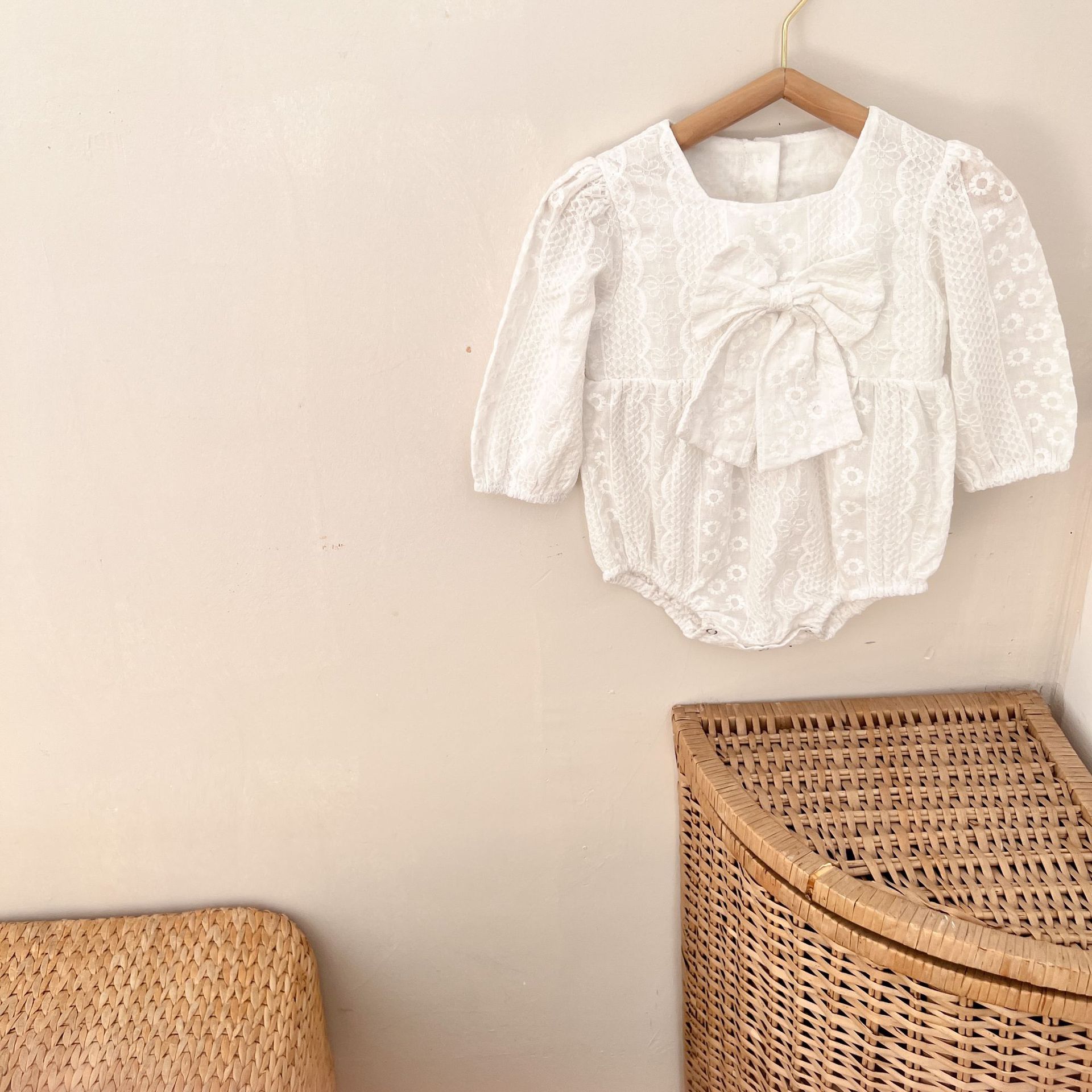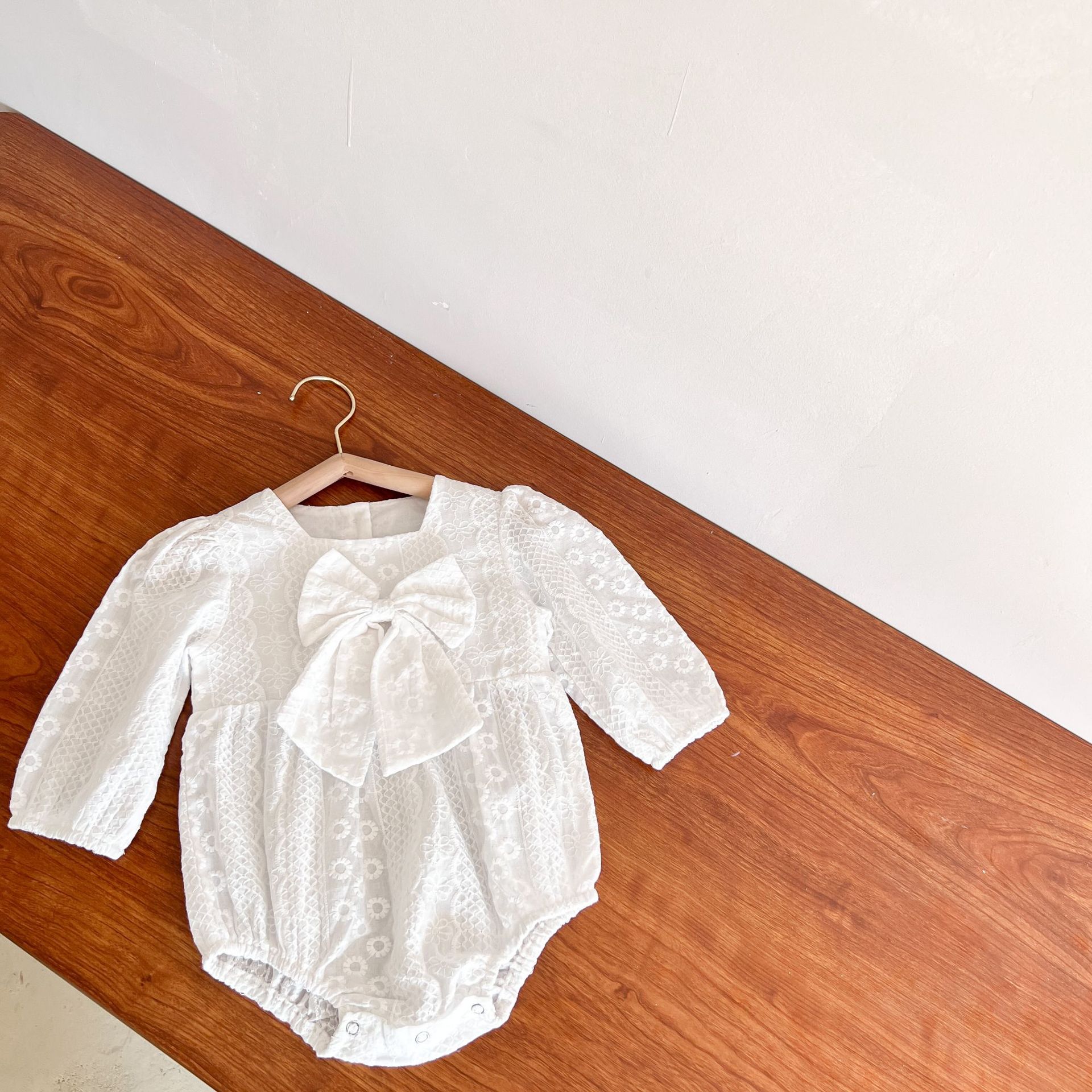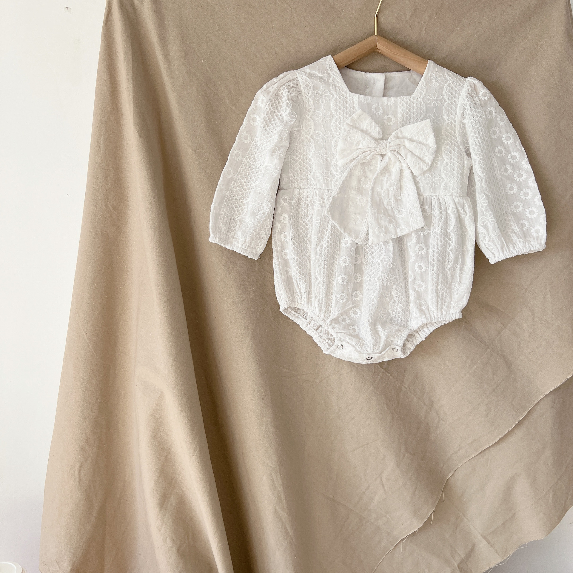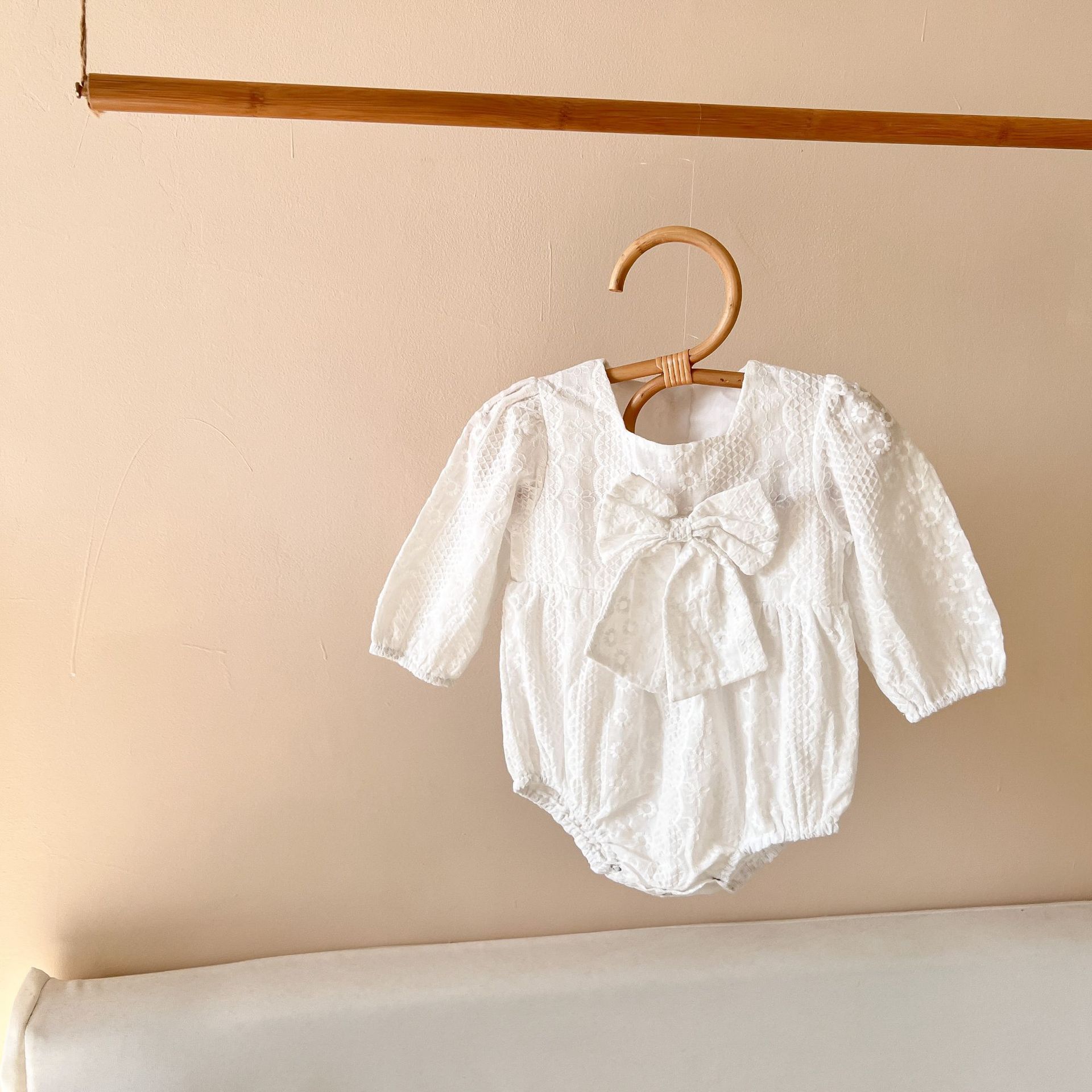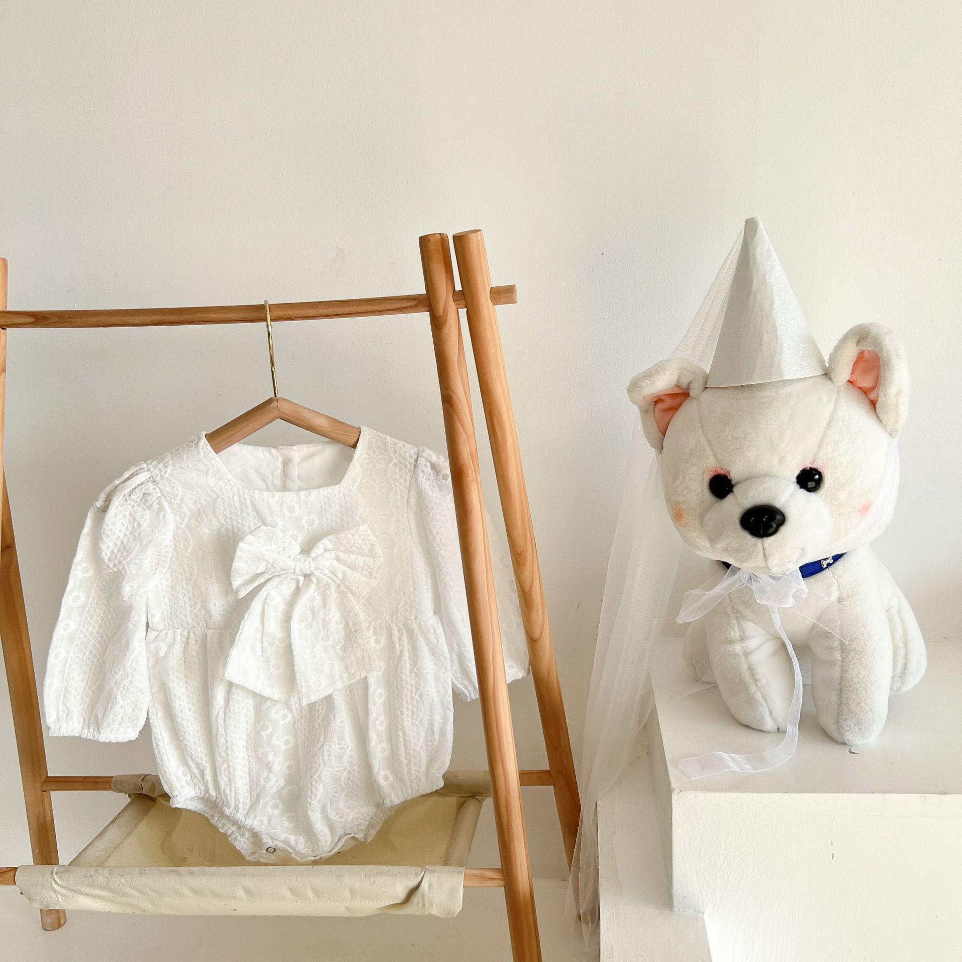 Spring long sleeved baby jumpsuit solid color embroidered big bow baby romper