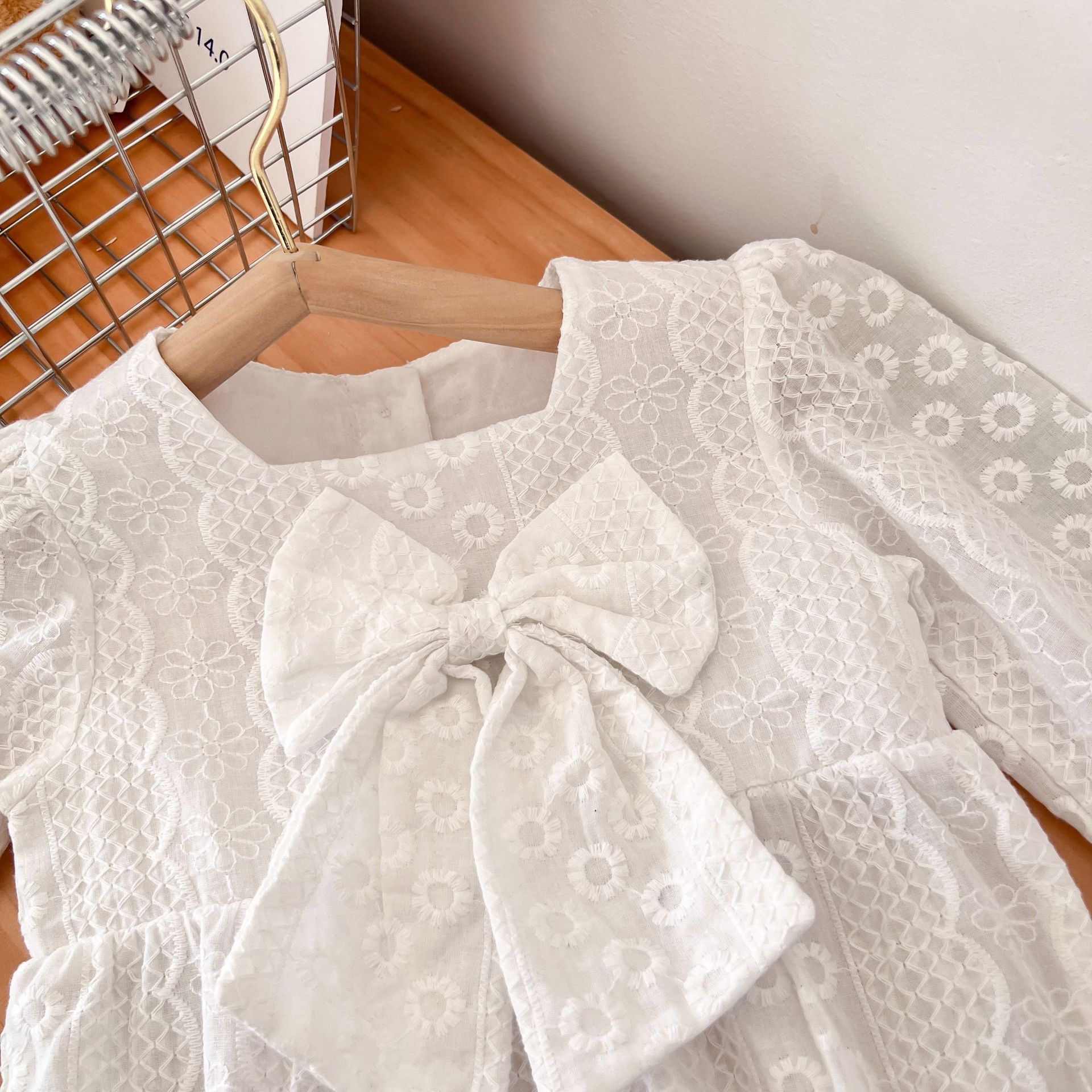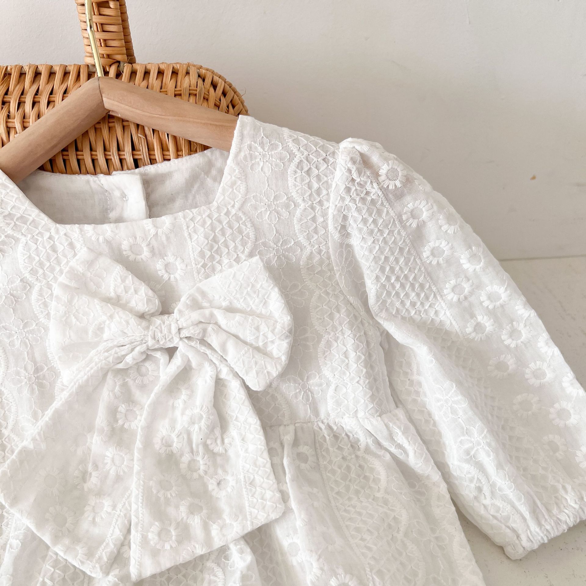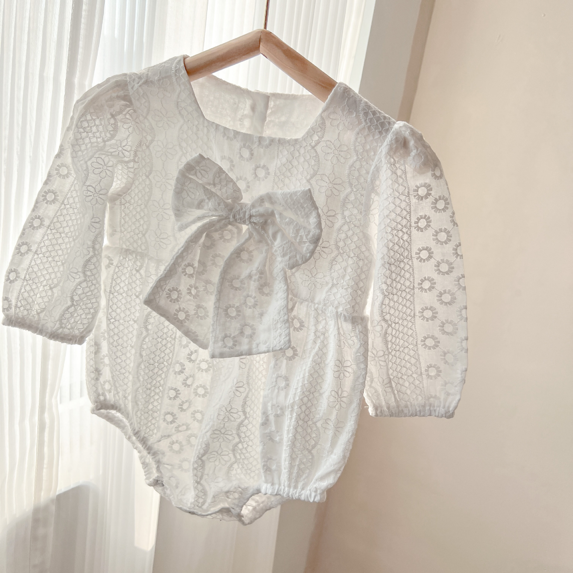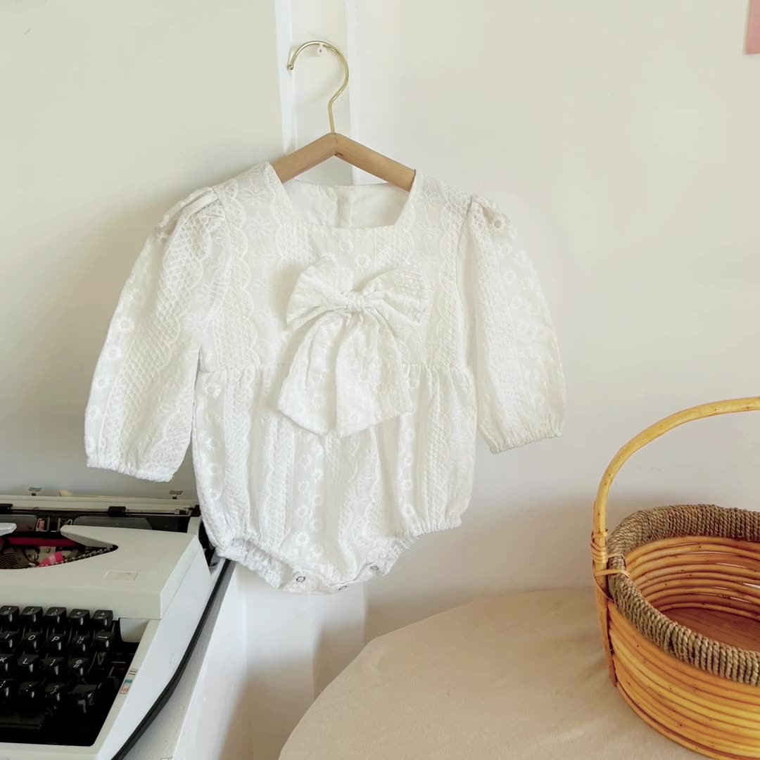 Spring long sleeved baby jumpsuit solid color embroidered big bow baby romper