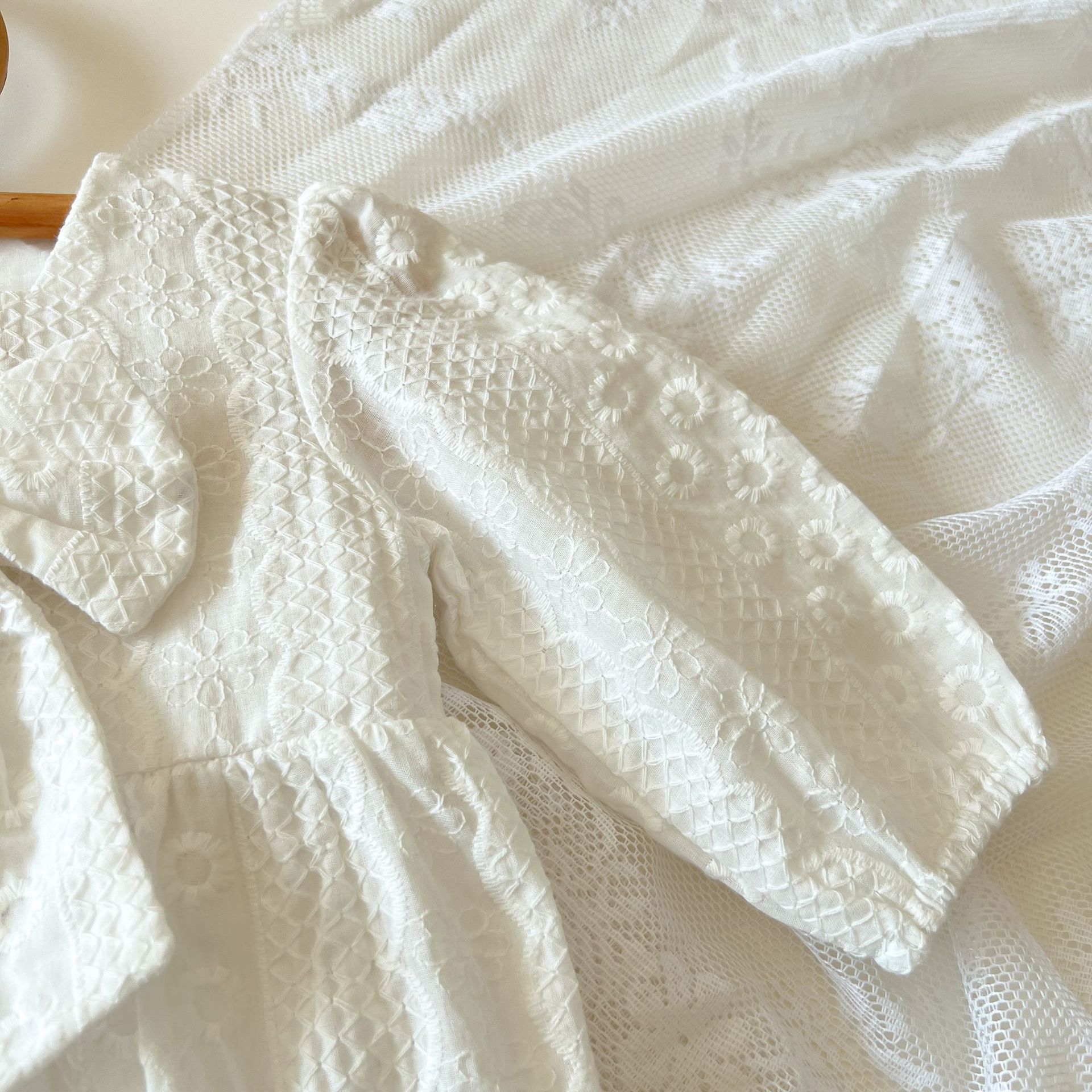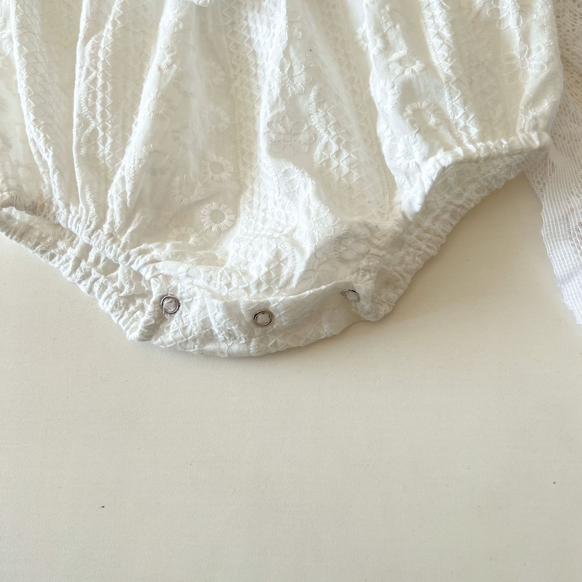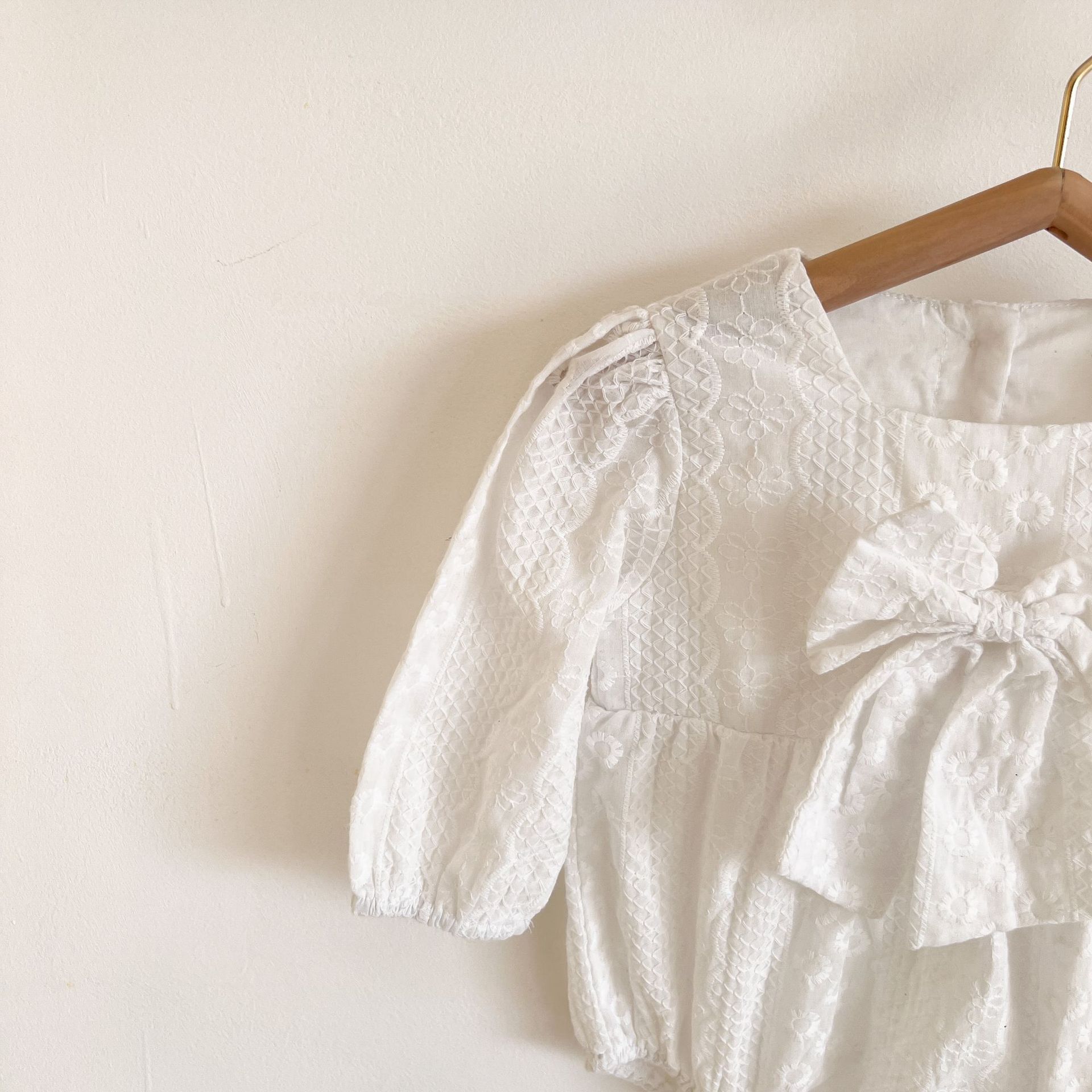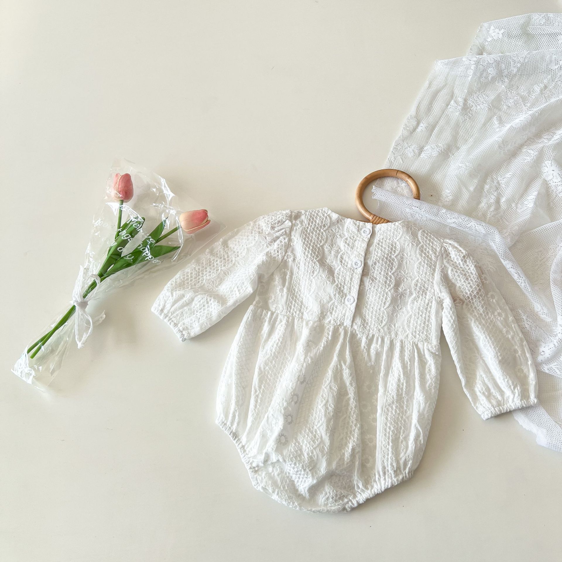 Spring long sleeved baby jumpsuit solid color embroidered big bow baby romper