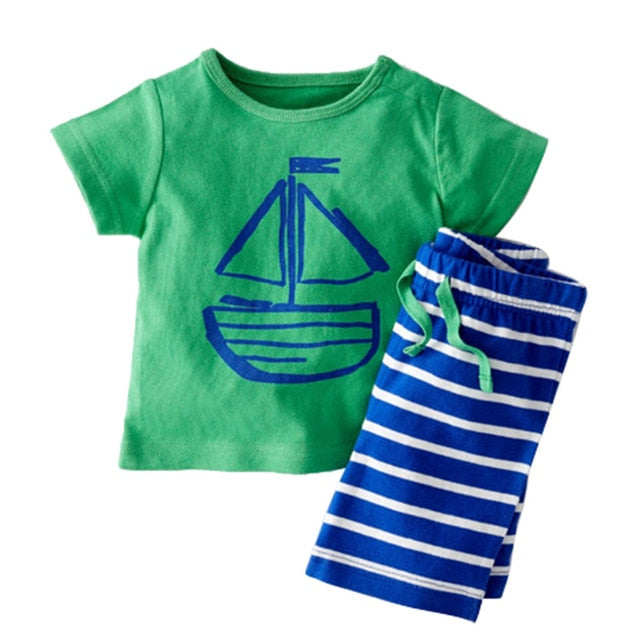 2 pcs Baby Boy Clothing Set Summer Cartoon Printed T-Shirt+ Stripe Shorts Baby Boy Clothes