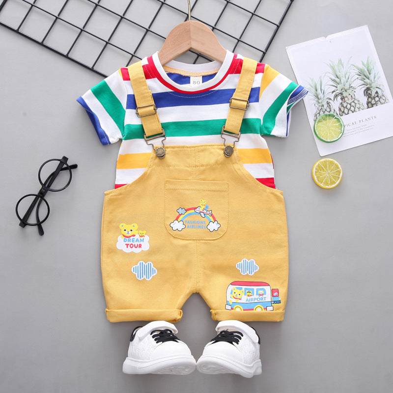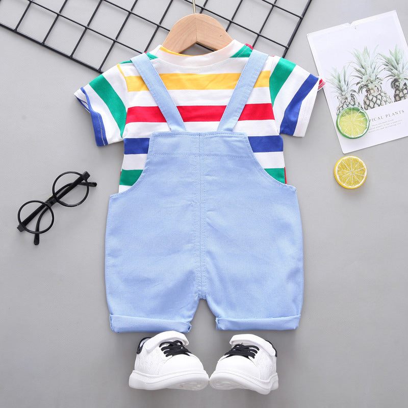 Children's Clothing Boys Striped Short Sleeve Printed Straps Two-Piece Fashion Cute Boy Summer Thin Section