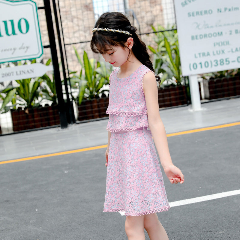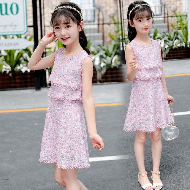 Teenage Girls Princess Dress Summer Vest Lace Pink Kids Dresses for Girls Clothes Girls Dress Children Costume 10 12 Year